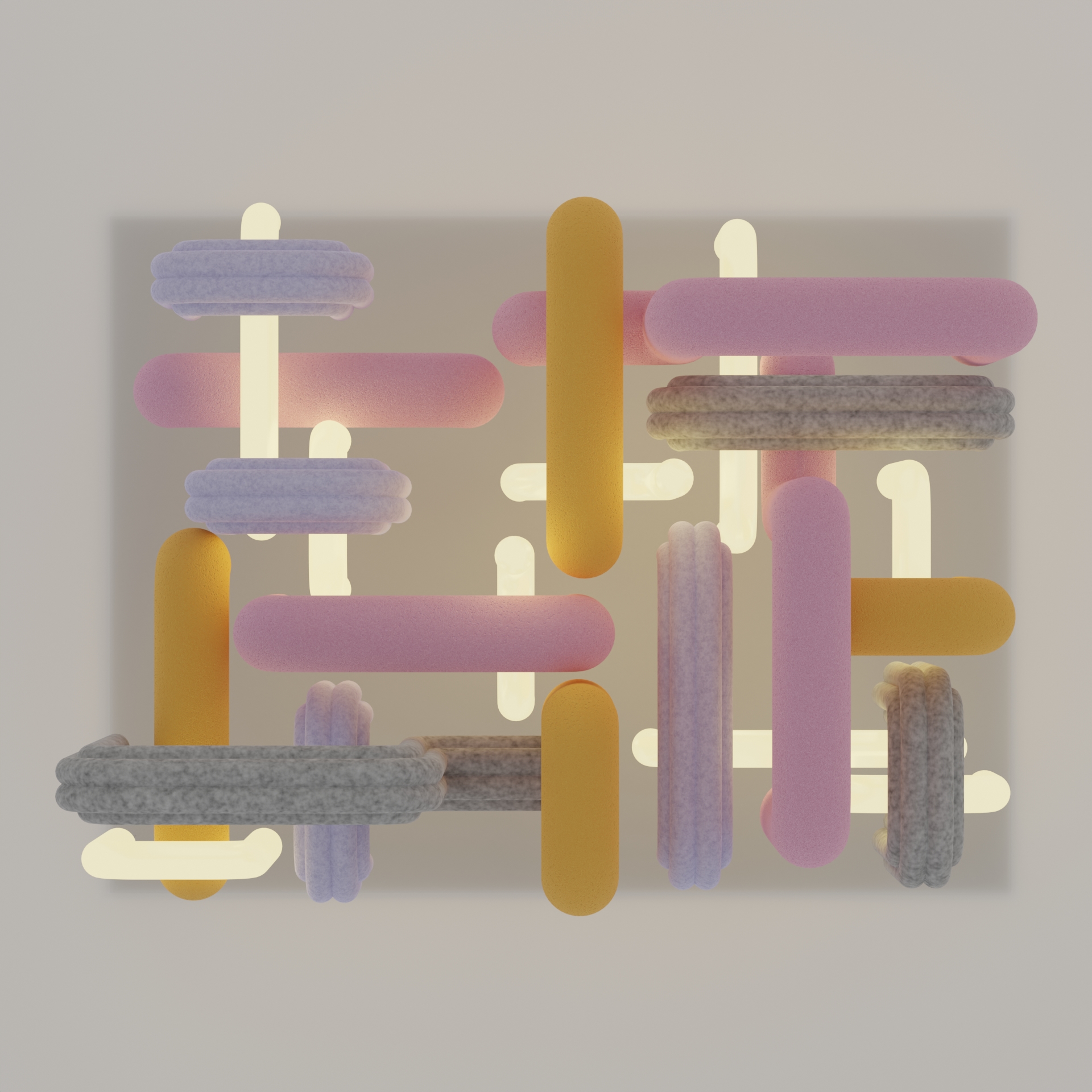 Pipe Dream is a cluster of felt, sponge and LED tubes designed to absorb sound and brighten a space.